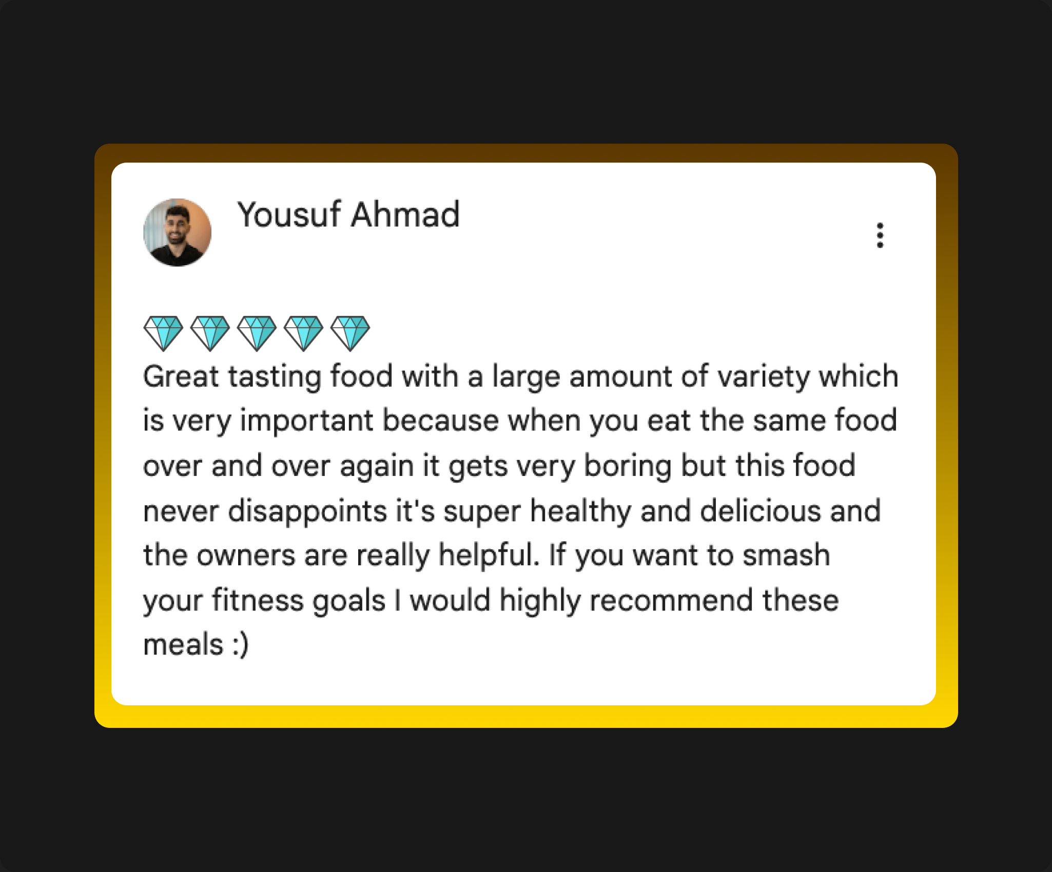 With an average rating of 4.8 stars, our customers consistently praise the quality, taste, and convenience of our meals